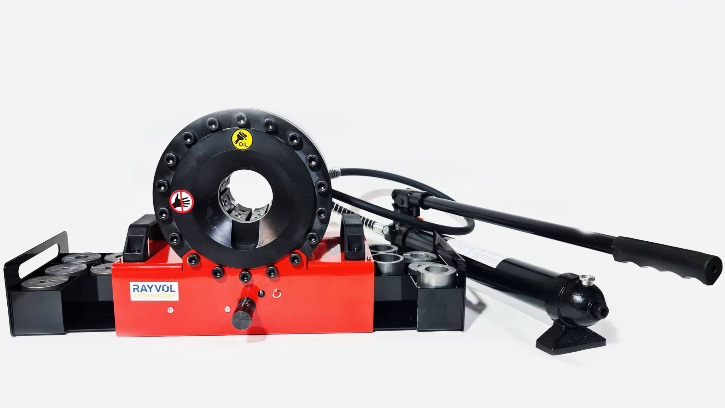 Подходит для обжима РВД до 51 мм (2 дюйма), в т. ч. рукава 4SH, 4SP, R13, R15 и др., обжимает также стальные и алюминиевые трубы, тросы.